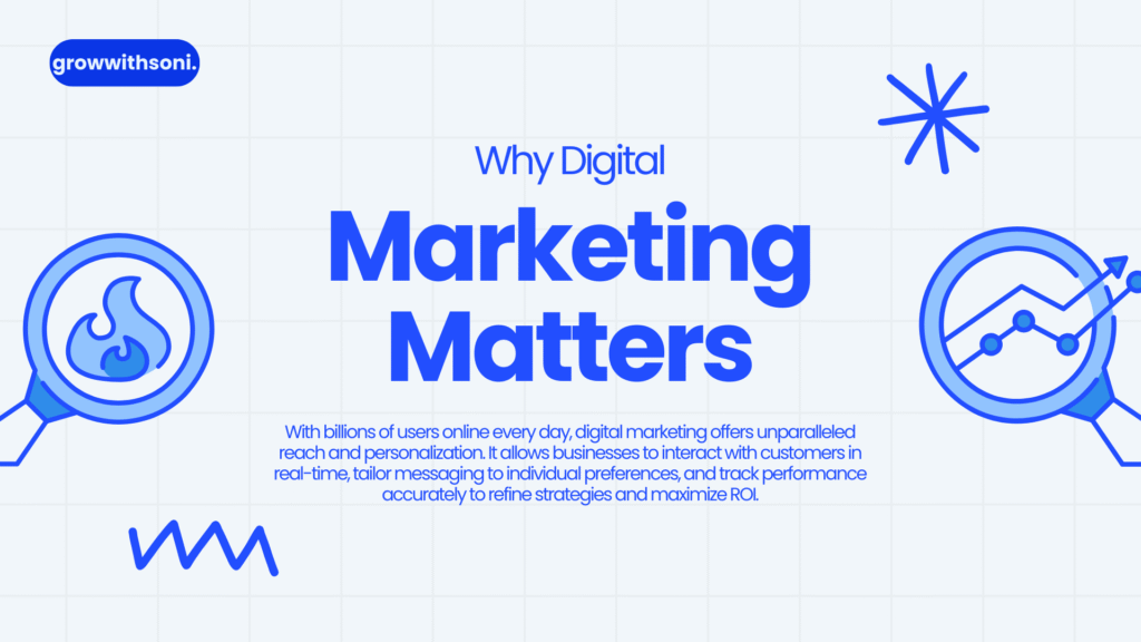 In today’s fast-paced digital world, businesses need more than just traditional marketing to stay competitive. Digital marketing has become essential for brand growth, customer engagement, and revenue generation. Here’s why it matters: